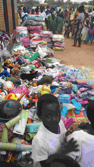 Dank der Spendeneinnahmen vor der Sommerreise 2017 konnten Gabi Kramer und Nina Eggerath einen Grundstock an dringen benötigten Küchenutensilien kaufen: Teller, Tassen, Besteck und Wasservorratsbehälter. Die Übergabe wurde gekrönt von den Spielzeugspenden der Kinder aus Deutschland. Nie zuvor hatte die Gemeinde ihren kleinsten derart buntes Spielzeug bieten können.